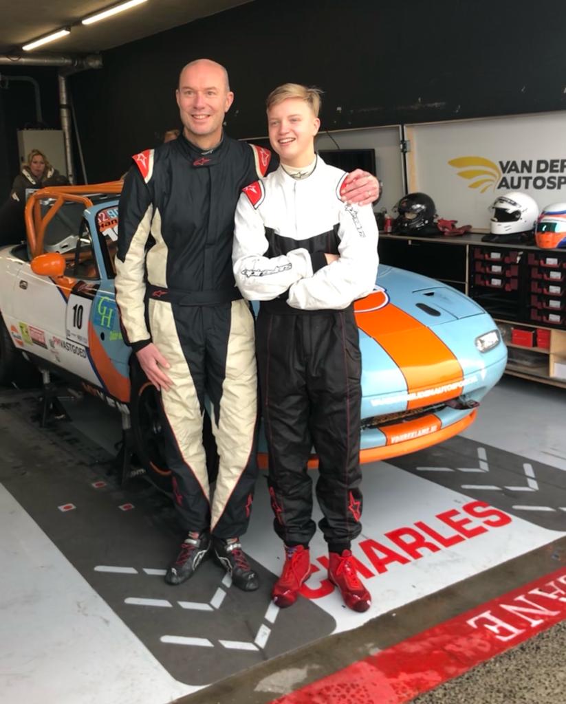 Het was daarnaast een heel bijzonder weekend. Niet omdat wij met 4 Mazda MX5’s in dezelfde pitbox stonden, maar wel omdat alle 4 de MX5’en werden bereden door een combinatie van vader en zoon. Hoe uniek is dat. En dan te bedenken dat het leeftijdsverschil tussen de jongste en de oudste van deze 4 vader-zoon koppels bijna 60 jaar was. Zo kunnen wij wel stellen dat de historische autosport generaties verbindt.