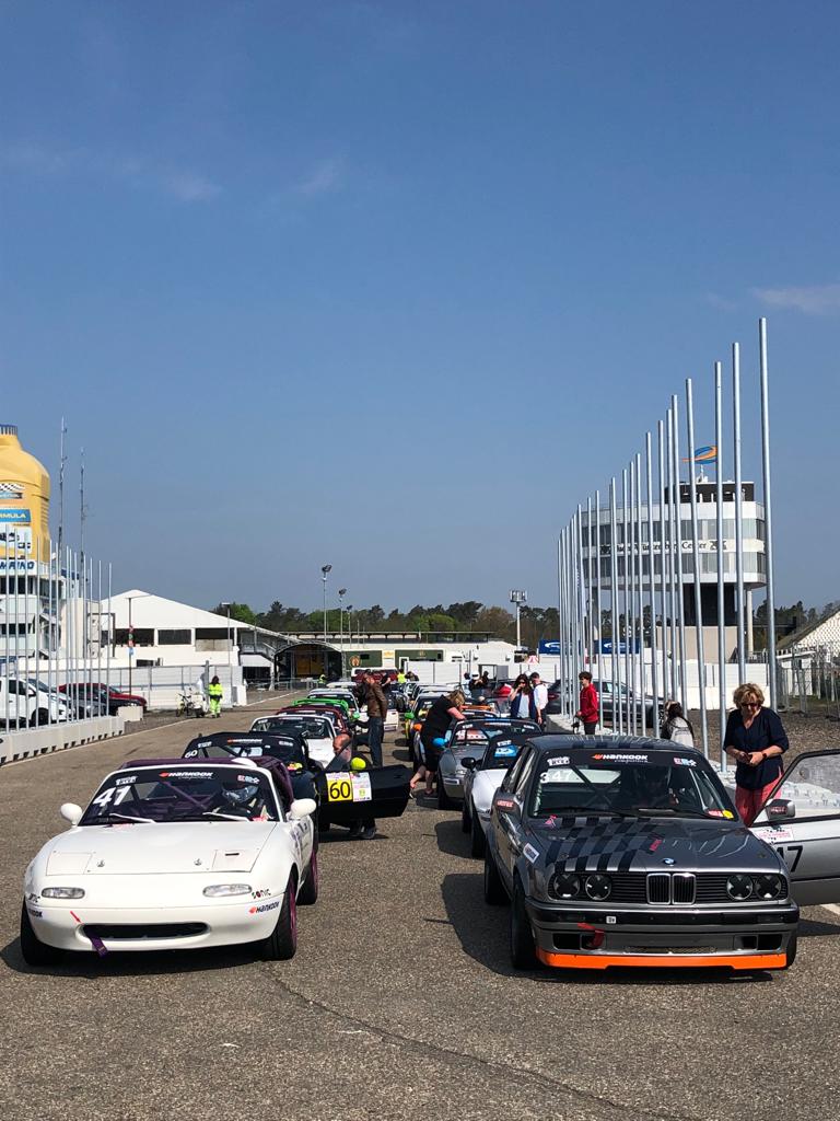 Na een te lange winterstop hadden wij bijna 30 deelnemers voor onze eerste wedstrijd. Niet zo gek, want hoe groot is de kans dat je op een F1 circuit mag rijden in een programma dat vol zit met aansprekende (historische) klassen. Iedereen had zich dan ook verheugd op een korte vakantie in Duitsland waarbij tussendoor ook nog werd geracet.
