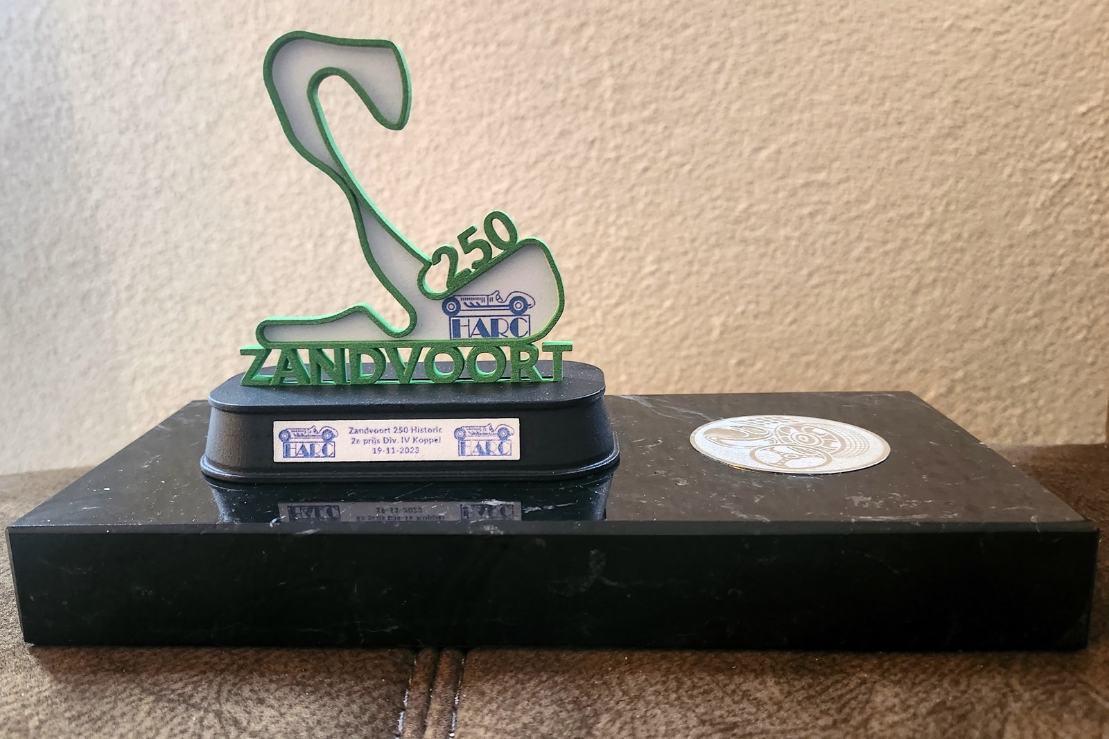 Nog even de winnaars van de Historic 250 op een rijtje. De fraaie 3D geprinte trofeeën zijn beschikbaar gesteld door RapidCenter uit Houten: https://www.rapidcenter.nl/nl/. Zij kunnen alles 3D printen met state-of-the-art technieken in metaal en kunststof, van prototype tot seriewerk.